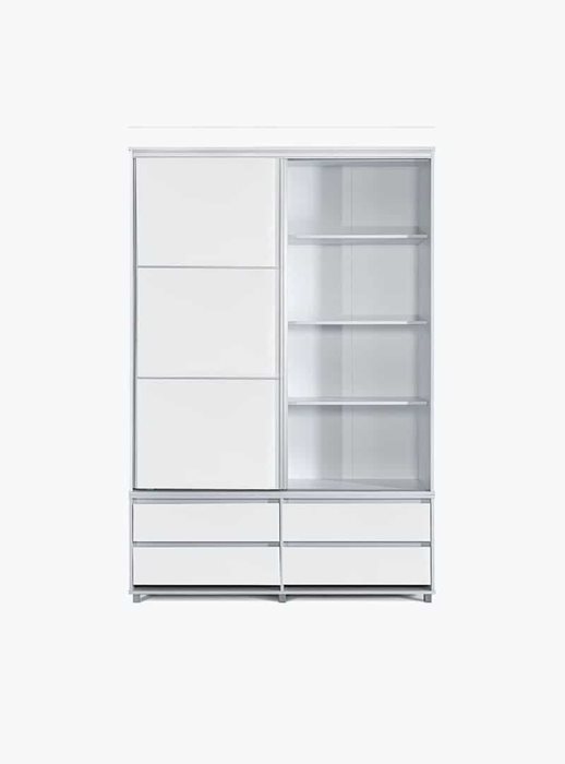 מרובה מדפים בצד אחד ושטח רב לתלייה בצידו השני.